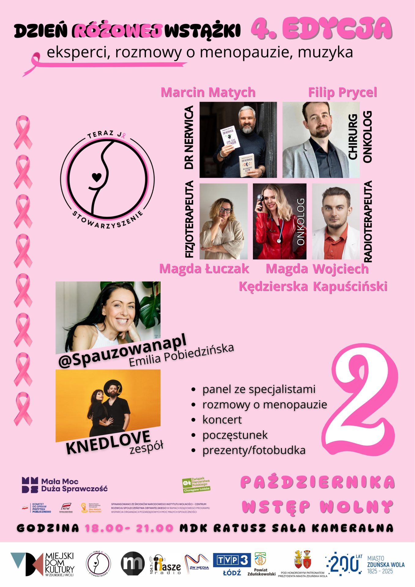 Już po raz czwarty w Zduńskiej Woli odbędzie się wydarzenie, które łączy edukację, kulturę i dobrą energię. Dzień Różowej Wstążki zaplanowano na czwartek, 2 października 2025 roku, w sali kameralnej Miejskiego Domu Kultury Ratusz. Spotkanie potrwa od godziny 18:00 do 21:00, a wstęp jest bezpłatny.